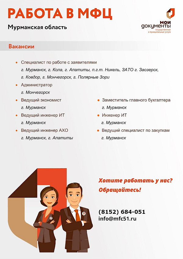 Уважаемые соискатели! Резюме просим направлять по электронной почте: info@mfc51.ru