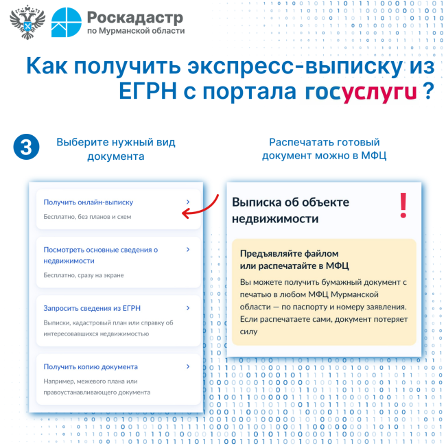Экспресс-выписка – простой, быстрый и удобный способ получить сведения о недвижимости из Единого государственного реестра недвижимости (ЕГРН). Экспресс-выписка предоставляется владельцу только по своим объектам недвижимости, сведения о которых содержатся в «Личном кабинете» портала «Госуслуги».