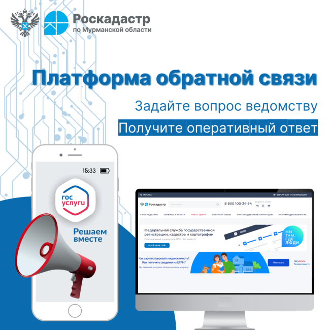 Мурманский Роскадастр подключен к платформе обратной связи (ПОС), объединённый с порталом «Госуслуги». ПОС позволяет гражданам и юридическим лицам через официальный сайт Роскадастра направлять сообщения на рассмотрение, а также участвовать в голосованиях, опросах и общественных обсуждениях.