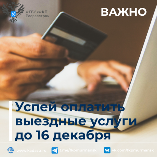 В связи с проведением мероприятий по реорганизации заявителям, которые хотят получить выездные услуги Кадастровой палаты по Мурманской области по приёму и выдаче документов в декабре, необходимо поторопиться.