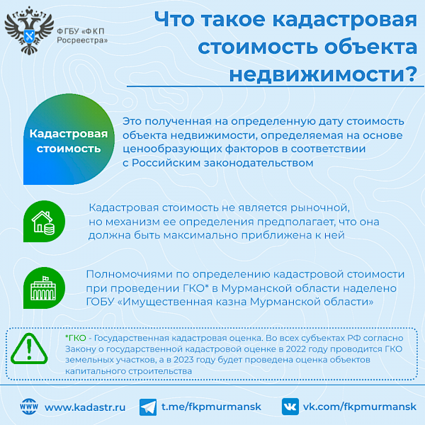 Полномочиями по определению кадастровой стоимости при проведении ГКО в Мурманской области наделено ГОБУ «Имущественная казна Мурманской области».