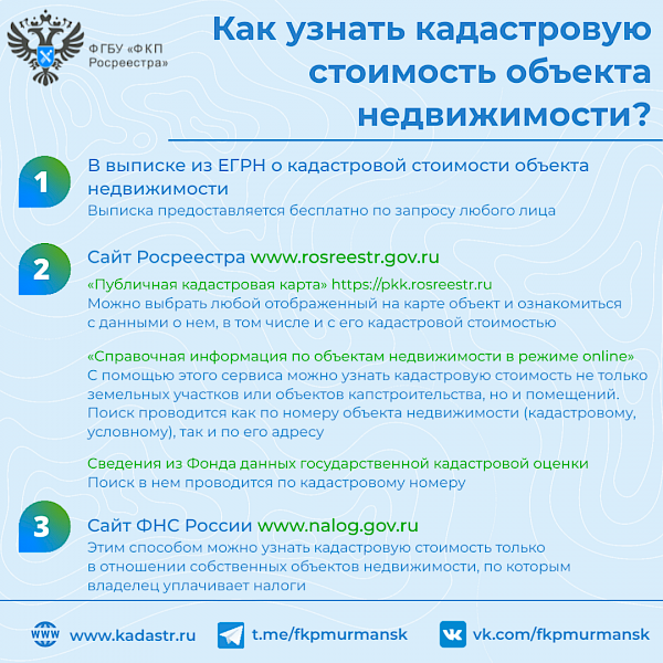Узнать кадастровую стоимость объектов недвижимости можно следующим образом: