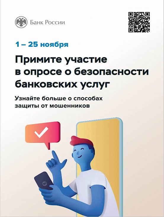 Банком России с 1 по 25 ноября текущего года проводится опрос в целях определения степени удовлетворенности уровнем безопасности финансовых услуг, оказываемых организациями кредитно-финансовой сферы. Данный опрос проводится на регулярной основе и его результаты будут использоваться Банком России при выработке решений, направленных на повышение уровня киберграмотности населения и уровня доверия к финансовым институтам.