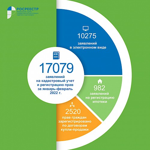 За январь-февраль 2022 года в Управление Росреестра по Мурманской области поступило более 17 тыс. заявлений на проведение учетно-регистрационных действий. Процент электронных заявлений составил 60%.