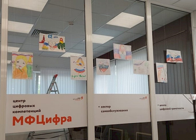 В честь торжественной даты силами детей сотрудников отделения организована выставка рисунков «Наш дом – Россия». Своим творчеством ребята выразили любовь и уважение к своей Родине.