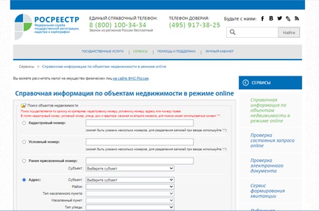Данный сервис предназначен для поиска общедоступных сведений по объектам недвижимости в режиме онлайн. Поиск осуществляется по одному из критериев:
