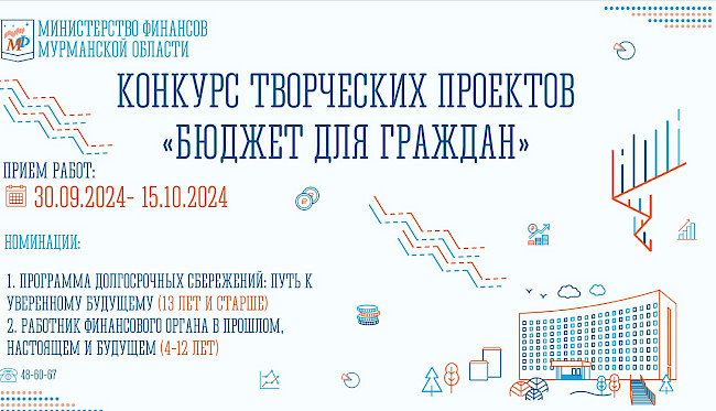 Министерство финансов Мурманской области приглашает принять участие в конкурсе творческих проектов «Бюджет для граждан», который проводится в целях повышения заинтересованности населения Мурманской области в вопросах бюджетной и финансовой грамотности.