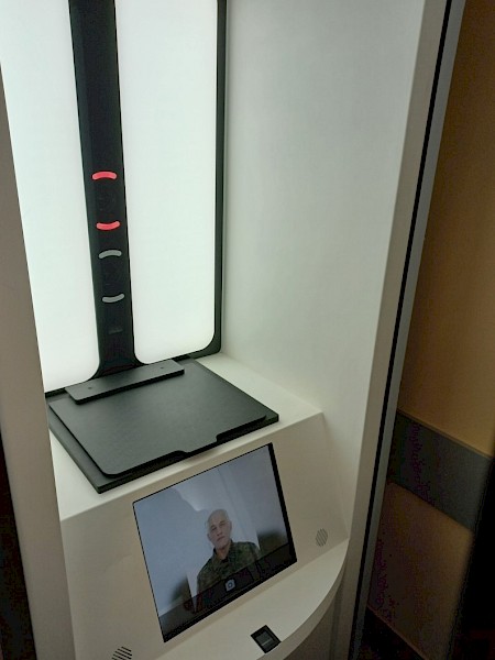 Вся процедура заняла около 30 минут. Специалист центра заполнил заявление, отсканировал необходимые документы и выдал заявителю специальный штрихкод, необходимый для активации криптокабины, после чего, гражданину осталось только зарегистрировать свои биометрические параметры: сфотографироваться, отсканировть папиллярные узоры пальцев рук и необходимые документы.