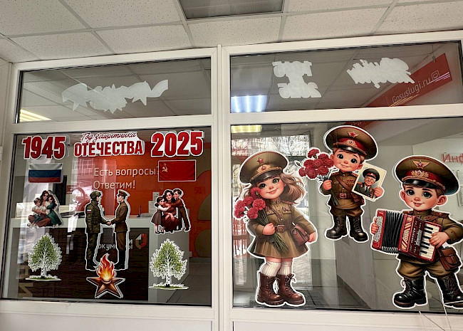 В рамках акции сотрудники отделения подготовили и украсили окна патриотической символикой, связанной с историей войны: изображениями Вечного огня, звезд и георгиевских ленточек, портретами героев войны. Украшенные окна создают ощущение праздника и вызывают чувство единения и благодарности воинам и труженикам тыла.