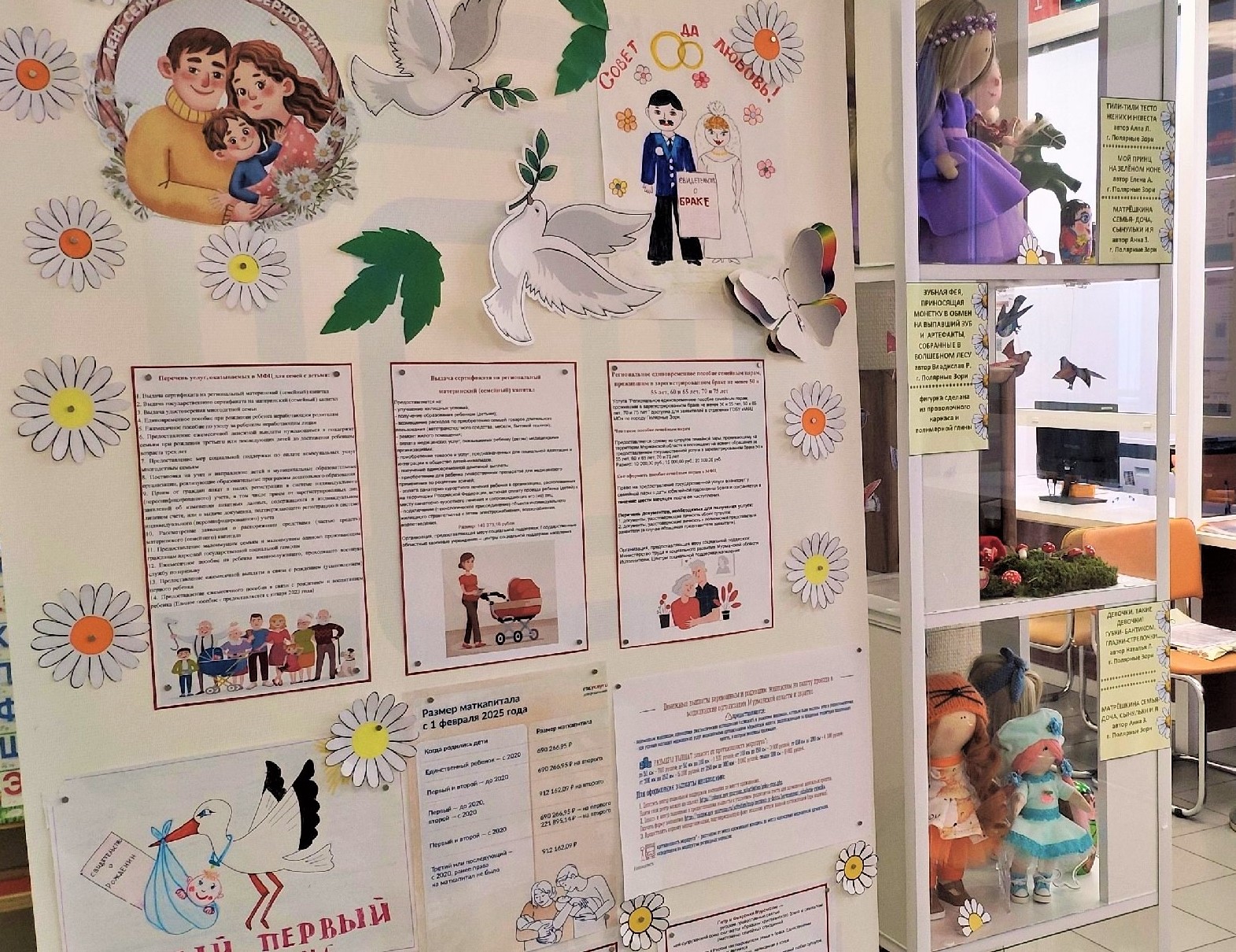 С 8 июля в отделении ГОБУ «МФЦ МО» по г. Полярные Зори представлена стендовая выставка, посвящённая Дню семьи, любви и верности.