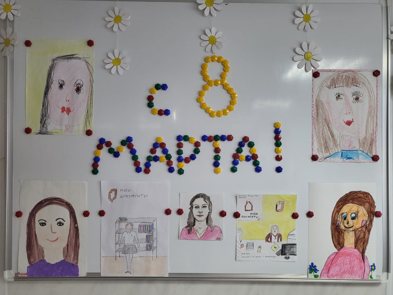 Выставка рисунков детей сотрудников многофункционального центра, приуроченная к 8 Марта, открылась в г. Полярном...