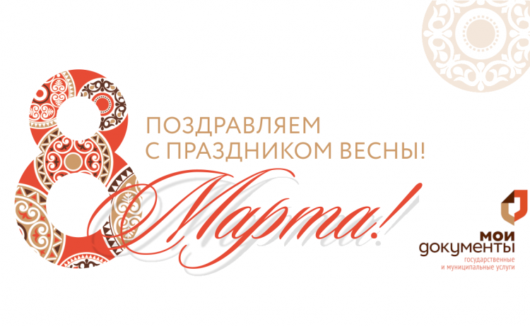 Мужской коллектив областного многофункционального центра сердечно поздравляет прекрасных дам с весенним праздником 8 Марта!