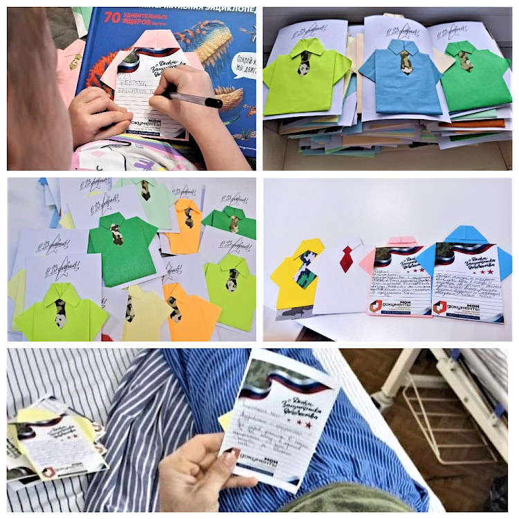 В отделении ГОБУ «МФЦ МО» ЗАТО Североморск прошла акция «Поздравь солдата», посвящённая Дню защитника Отечества. Посетителям отделения предлагалось написать пожелания и поздравления защитникам на специально оформленном бланке. Неравнодушные жители флотской столицы оставили 84 пожелания! Работники многофункционального центра оформили все собранные поздравления и пожелания в открытки и передали представителям общественной организации «Волонтеры Победы» для вручения участникам специальной военной операции, проходящим лечение в военном госпитале.