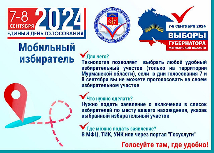 Такой способ голосования удобен для тех северян, кто в дни голосования 7-8 сентября 2024 года, не будет находиться рядом со своим избирательным участком в Мурманской области. Также, подать заявление о голосования по месту нахождения в указанный период можно через Единый портал государственных и муниципальных услуг или непосредственно в территориальную избирательную комиссию в Мурманской области. Обратиться за помощью в подаче заявлений в электронном виде через портал госуслуг можно в любое отделение МФЦ на территории региона.
