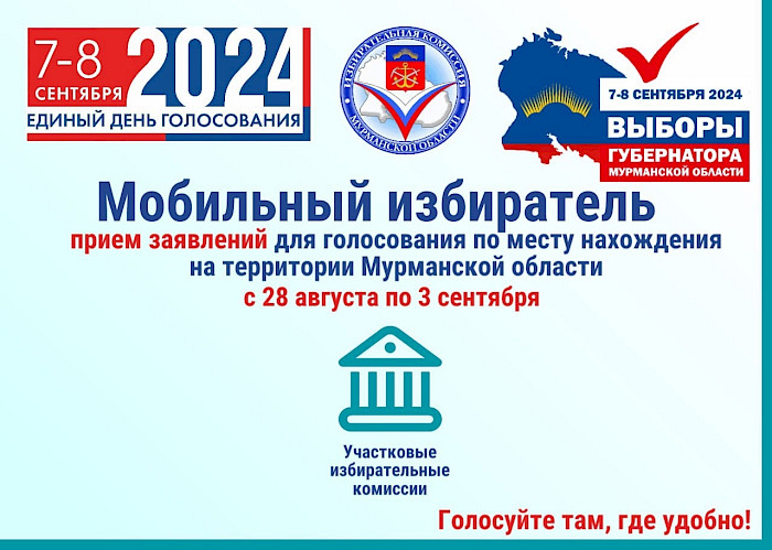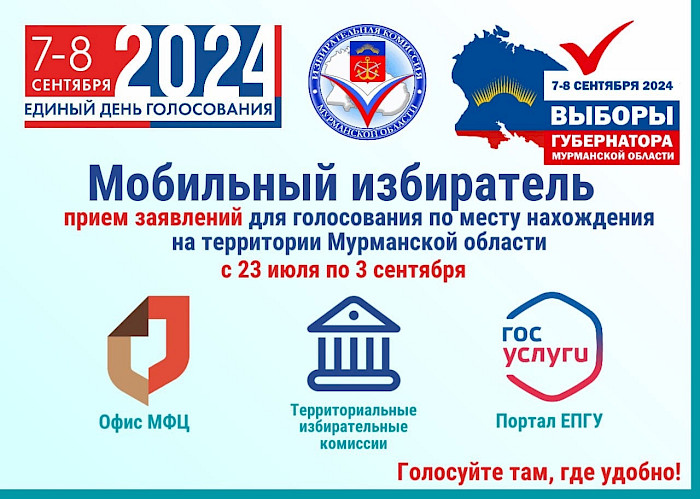 С 23 июля 2024 года по 3 сентября 2024 года во всех отделениях областного МФЦ будет организован прием заявлений граждан о включении в список избирателей по месту нахождения для голосования на выборах губернатора Мурманской области.