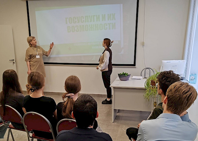 Отдельно специалист многофункционального центра рассказала об интересных для подростков услугах, таких как Пушкинская карта и поступление в колледж.