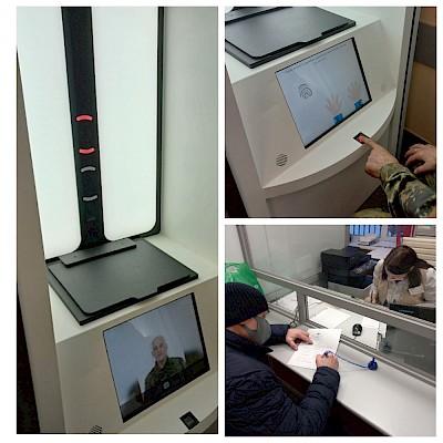 При подаче заявления через ПТК «Криптобиокабина» производится регистрация биометрических параметров заявителя (фотографирование и верификация отпечатков пальцев).