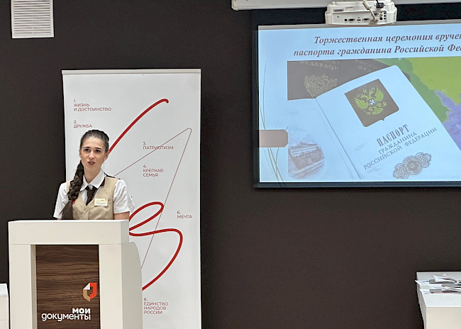 15 апреля 2025 года в отделении ГОБУ «МФЦ МО» ЗАТО Североморск состоялось торжественное вручение паспортов гражданам, достигшим возраста 14 лет. Мероприятие приурочено ко Дню города Североморска.