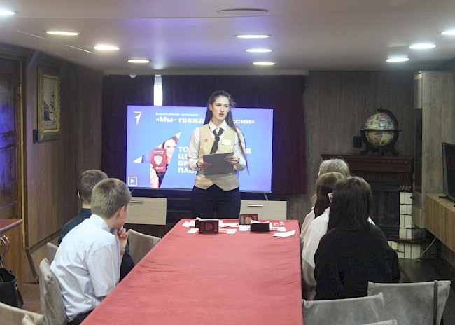 Ребят поздравила главный специалист молодежного движения «Движение первых». Специалист МФЦ рассказала о значении паспорта как основного документа, удостоверяющего личность гражданина РФ, новых возможностях, открывающихся после его получения, а также о возможностях получения государственных услуг на портале ЕПГУ.
