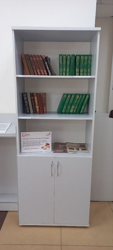 В зоне ожидания отделения установлен стеллаж с книгами, любую их которых можно взять с собой или почитать прямо в МФЦ. Также сюда можно принести собственную книгу.