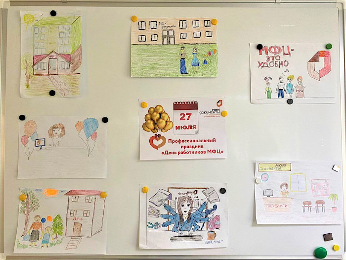 В преддверии профессионального праздника - Дня работника МФЦ в отделении ГОБУ «МФЦ МО» ЗАТО Александровск в г. Полярный организована выставка детских рисунков сотрудников МФЦ.