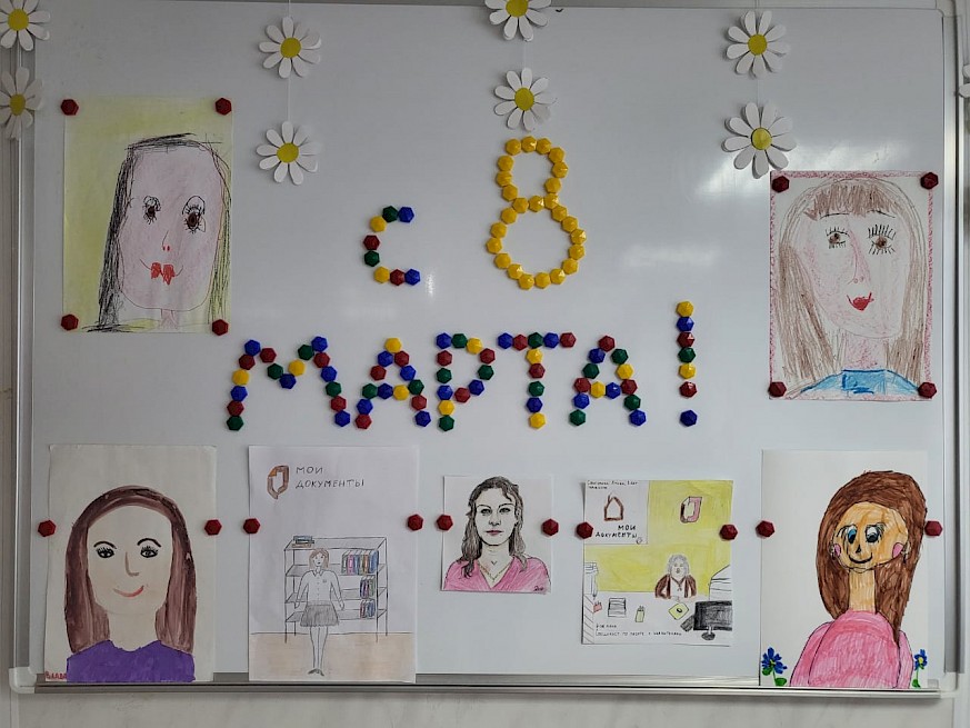 В преддверии прекрасного весеннего праздника 8 Марта дети сотрудников отделения ЗАТО Александровск нарисовали своих мам. Любовь к самым родным и важным людям в своей жизни ребята выразили в виде ярких праздничных портретов.